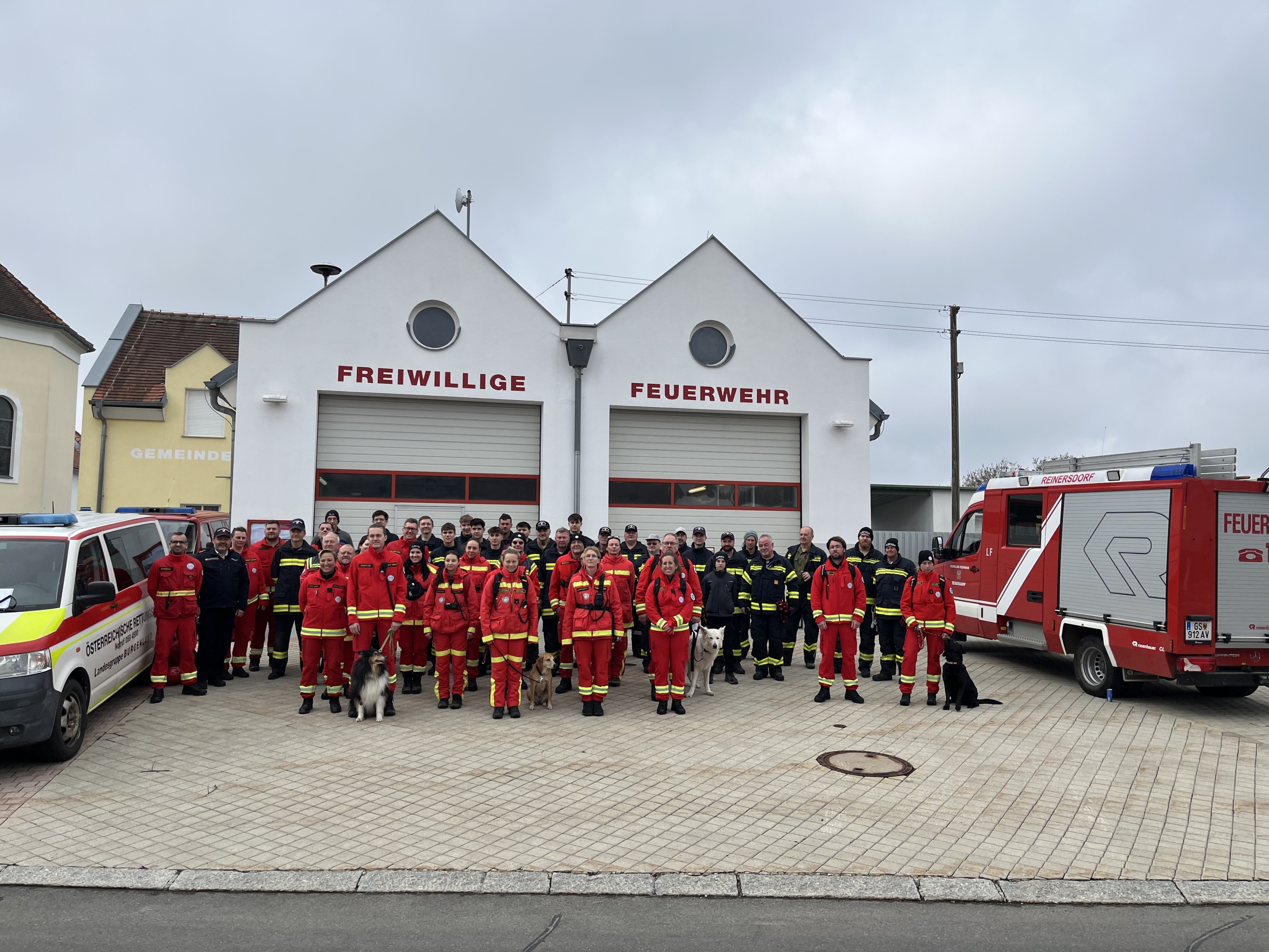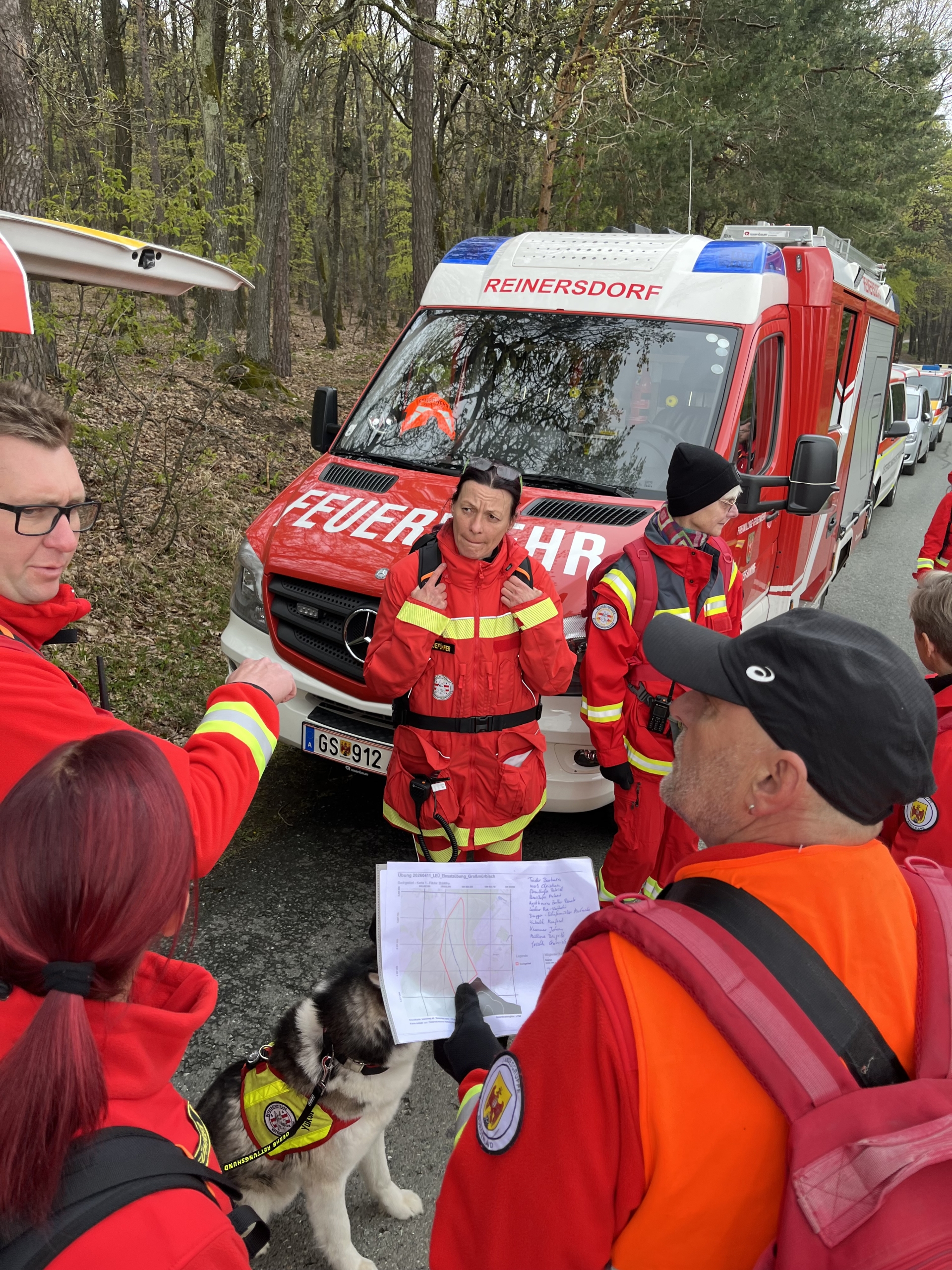 Zu Beginn erhielten die Mitglieder der Feuerwehren Großmürbisch, Reinersdorf und Inzenhof eine Einführung in die Rettungshundearbeit sowie in die Taktik der Kettensuche. Anschließend wurden zwei Suchteams gebildet, bestehend aus jeweils zwei Gruppenkommandanten, Rettungshundeführer:innen, Helfer:innen und Feuerwehrmitgliedern.