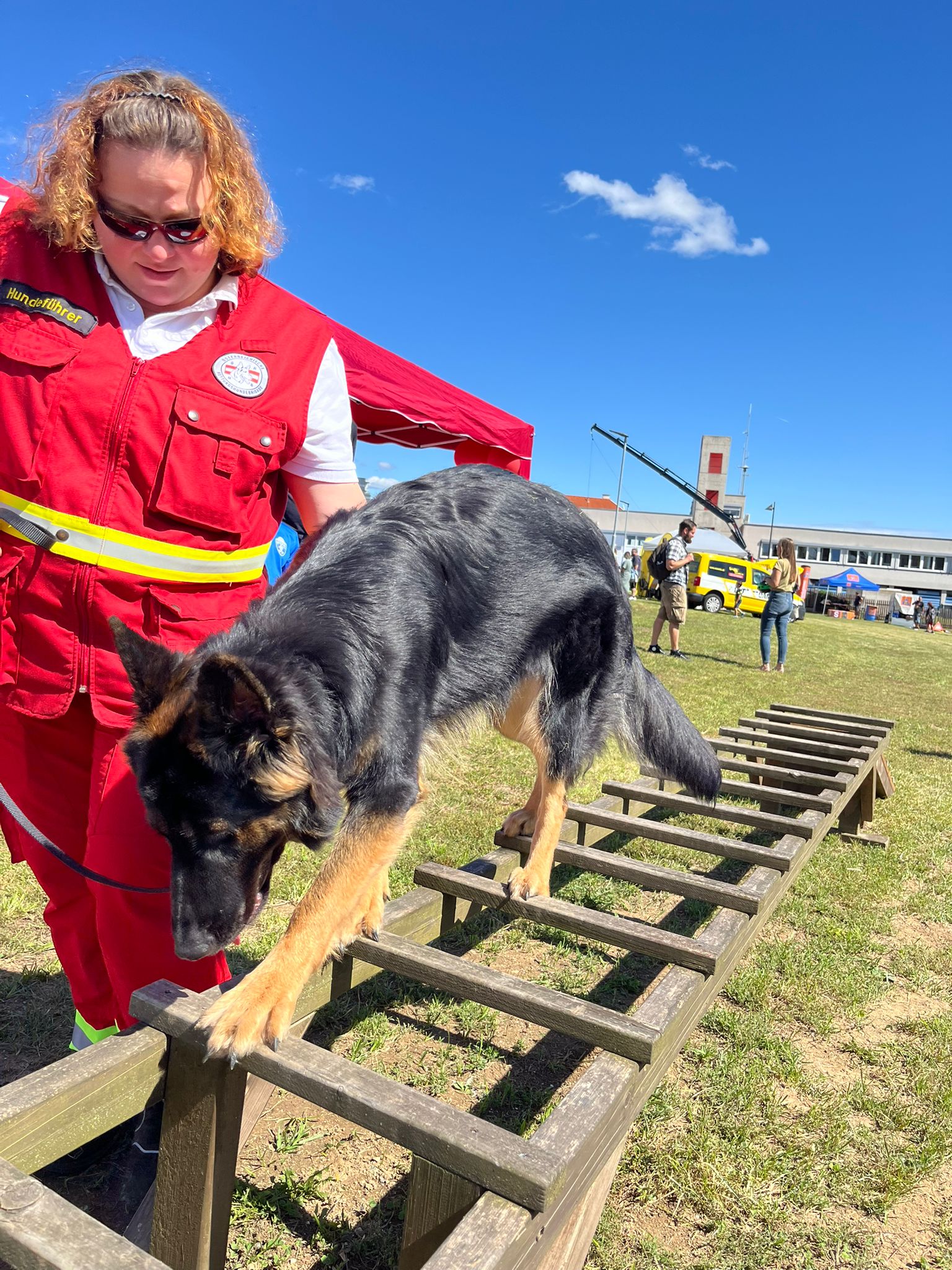 Ein besonderes Highlight war unsere Rettungshundearbeit, die wir im Rahmen mehrerer Vorführungen anschaulich präsentieren durften. So bekamen die Gäste einen Eindruck davon, wie wichtig und vielseitig die Arbeit unserer Hunde im Ernstfall ist.