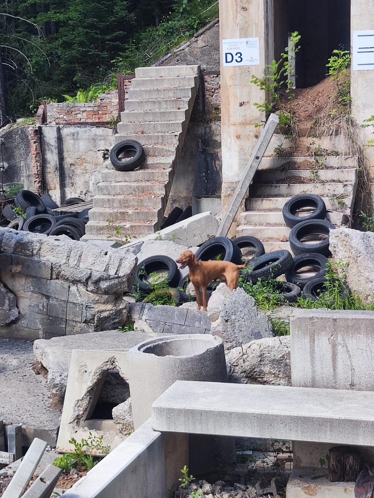 Einige anspruchsvolle Schadstellen am Trümmergelände Erzberg wurden uns vom Roten Kreuz zur Verfügung gestellt und durften erstmals für unsere Trainingseinheiten genutzt werden. Rund 30 Hundeführerteams nutzten dieses besondere Trainingsgebiet, um die Trümmersuche zu perfektionieren. Wir bedanken uns herzlich bei den Kolleg:innen vom Roten Kreuz für diese tolle Möglichkeit!