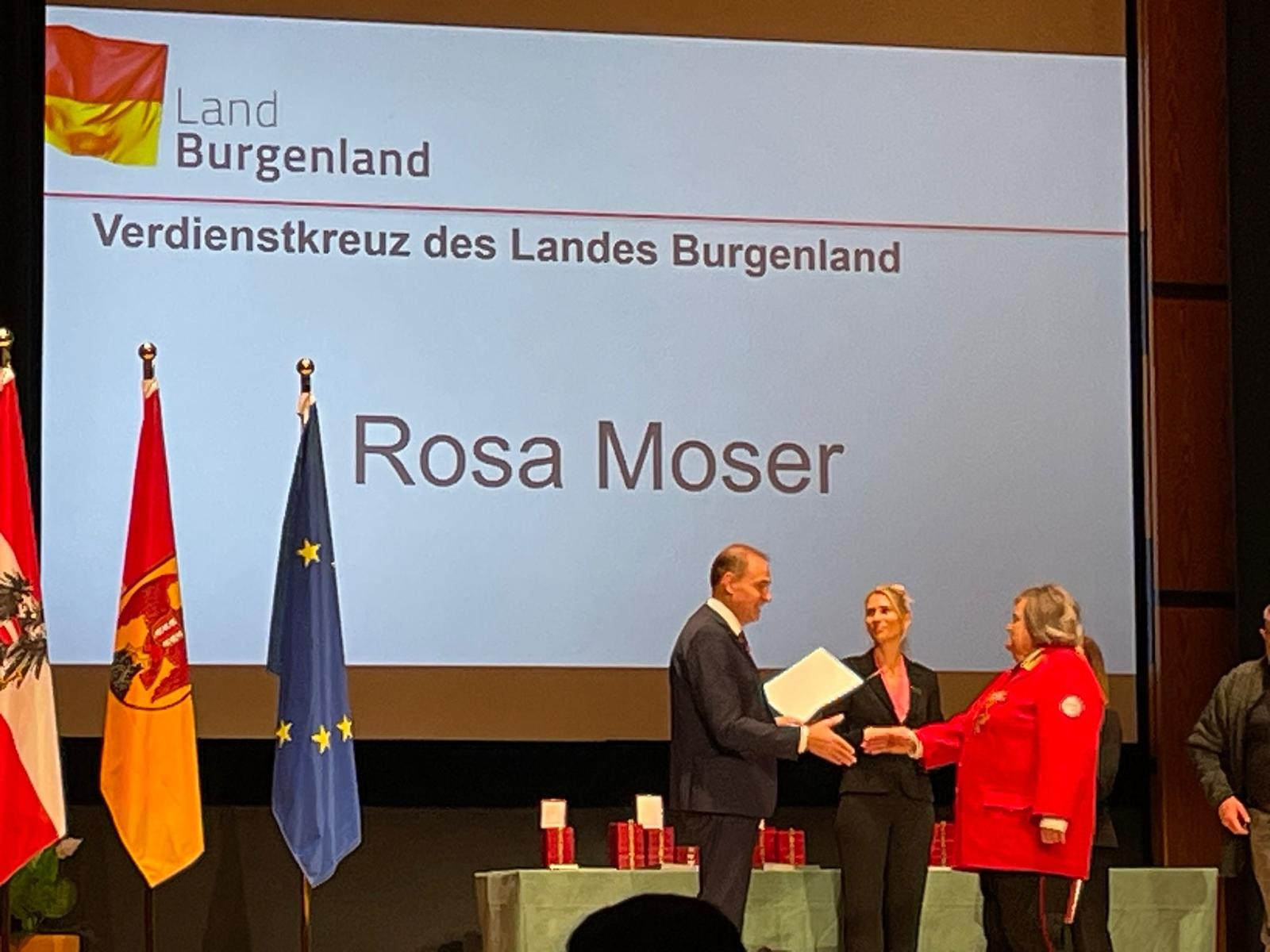 Ehrenlandesleiter Hans Moser erhielt das Goldene Ehrenzeichen des Landes Burgenland, Ehrenlandessekretärin Rosa Moser das Verdienstkreuz des Landes Burgenland.
