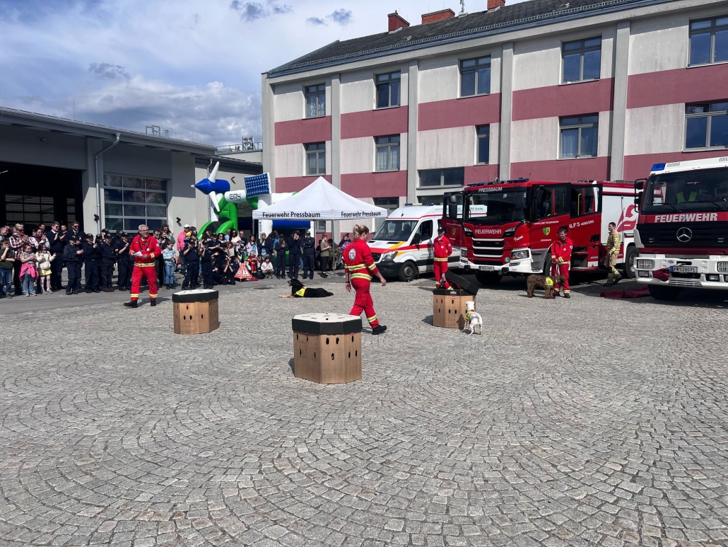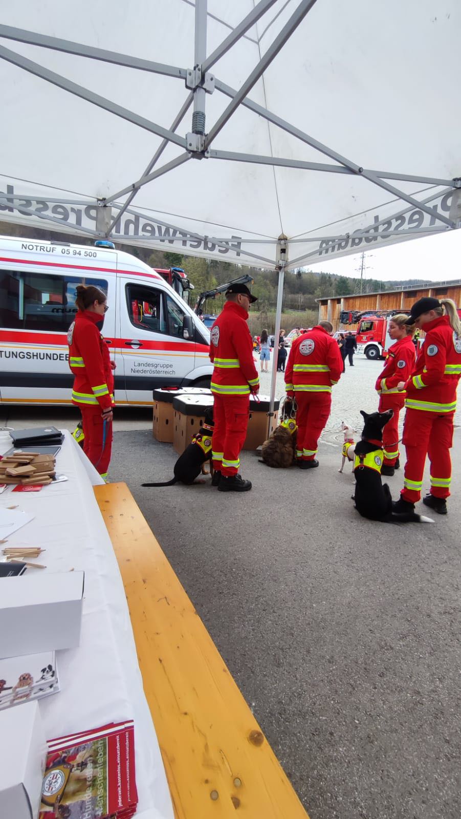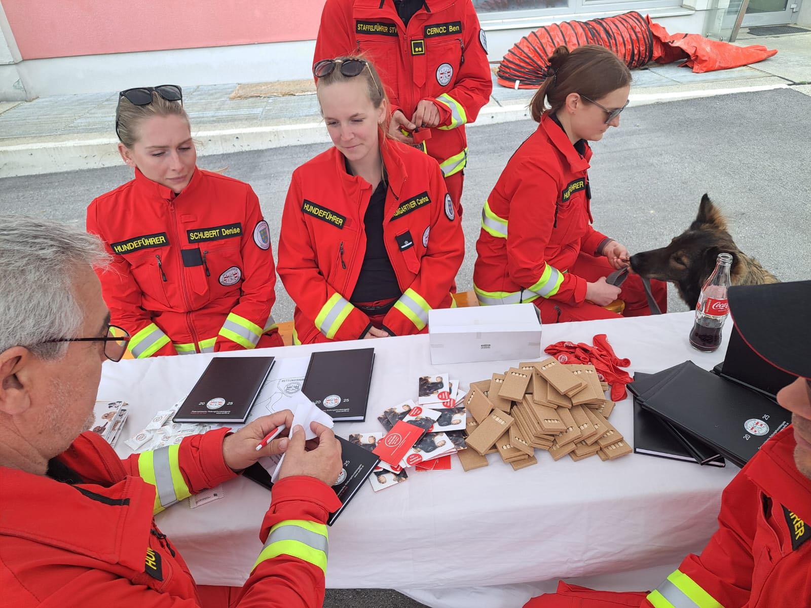 Neben dem Festakt der Feuerwehr und einer Vorführung der Feuerwehrjugend durften wir bei einem Stand die Gäste über unsere Arbeit informieren und Fragen beantworten und mit einer Vorführung das Können unserer Hunde präsentieren.