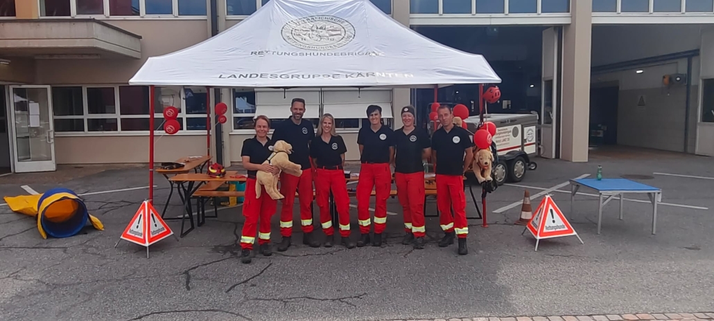 Die Staffel Villach war neben zahlreichen weiteren Einsatzorganisationen ebenfalls vor Ort und konnte den Besucher:innen einen Einblick in die Rettungshundearbeit gewähren. Zudem gab es noch eine Vorführung unserer Rettungshunde – anschließend durfte die Abkühlung im kühlen Nass natürlich nicht fehlen.