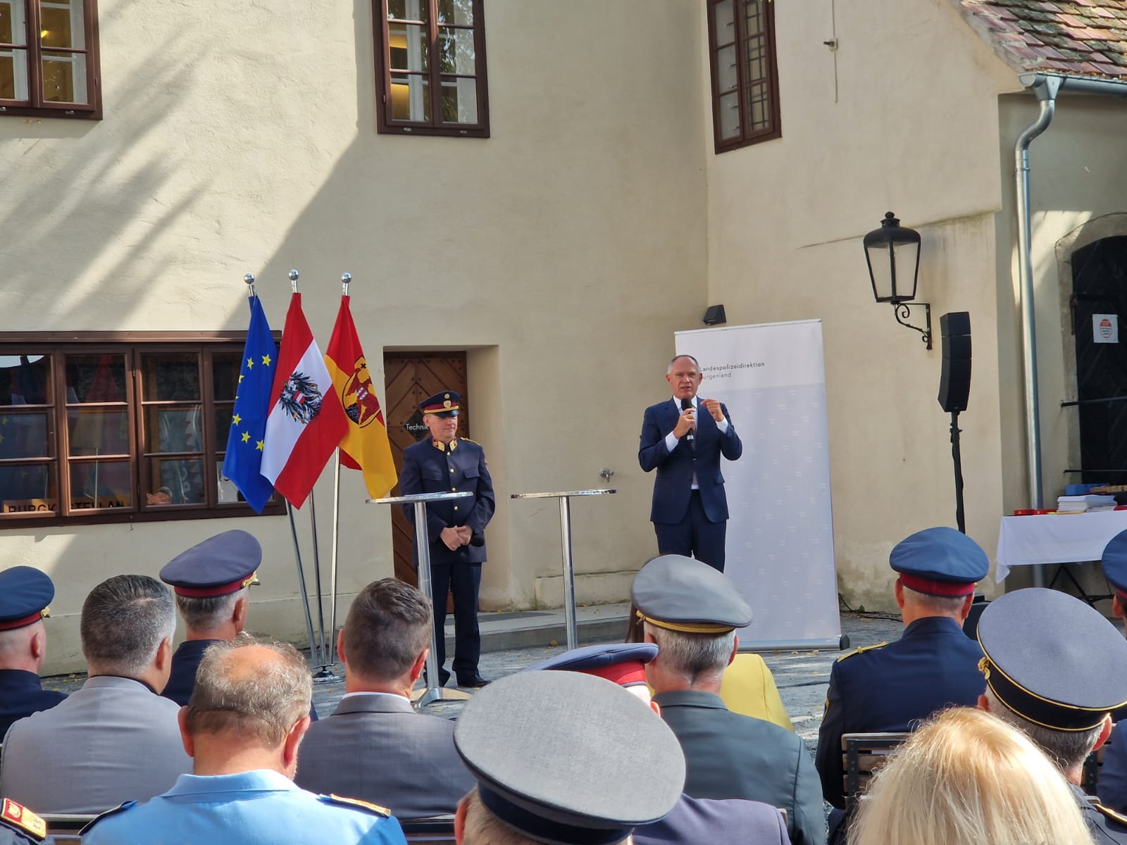 Im Rahmen der Veranstaltung wurden besondere Leistungen und Verdienste durch Innenminister Mag. Gerhard Karner sowie Landtagspräsidentin Mag. Astrid Eisenkopf gewürdigt und die Ausmusterung der Polizeigrundlehrgänge vollzogen.
