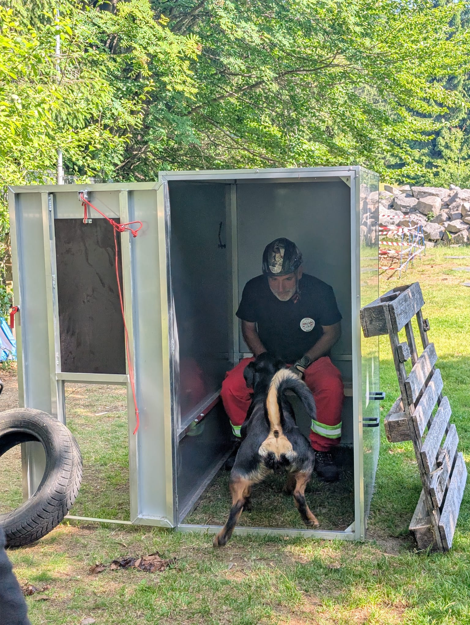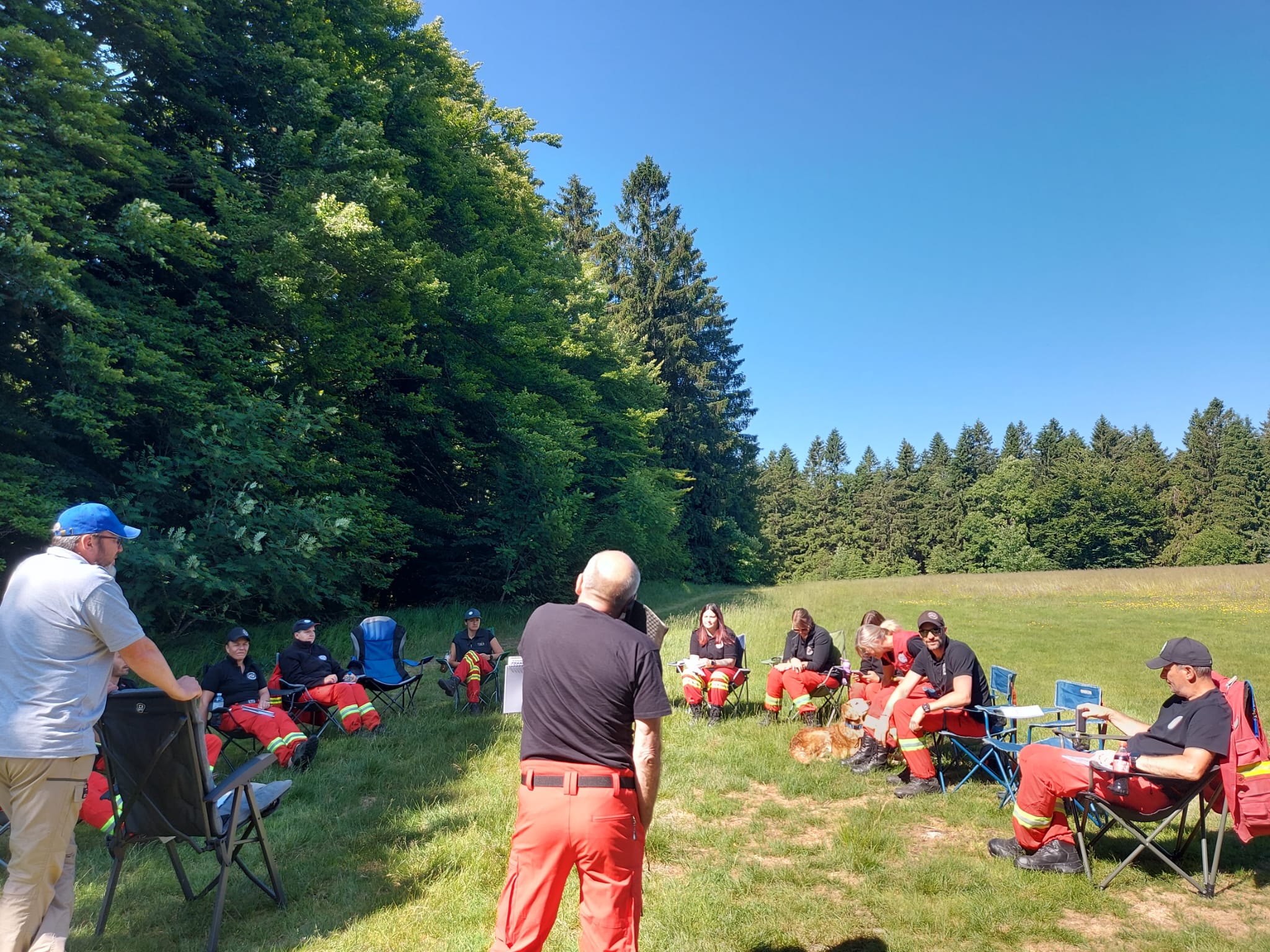 Während Juliane den Schwerpunkt auf das Trümmertraining legte, übernahm Klaus das Flächentraining. Beide Trainingsblöcke überzeugten durch zahlreiche neue, leicht umsetzbare Inputs, die sowohl für Hundeführer:innen als auch für Helfer:innen wertvolle Impulse lieferten.