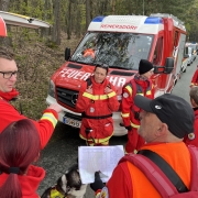 Zu Beginn erhielten die Mitglieder der Feuerwehren Großmürbisch, Reinersdorf und Inzenhof eine Einführung in die Rettungshundearbeit sowie in die Taktik der Kettensuche. Anschließend wurden zwei Suchteams gebildet, bestehend aus jeweils zwei Gruppenkommandanten, Rettungshundeführer:innen, Helfer:innen und Feuerwehrmitgliedern.