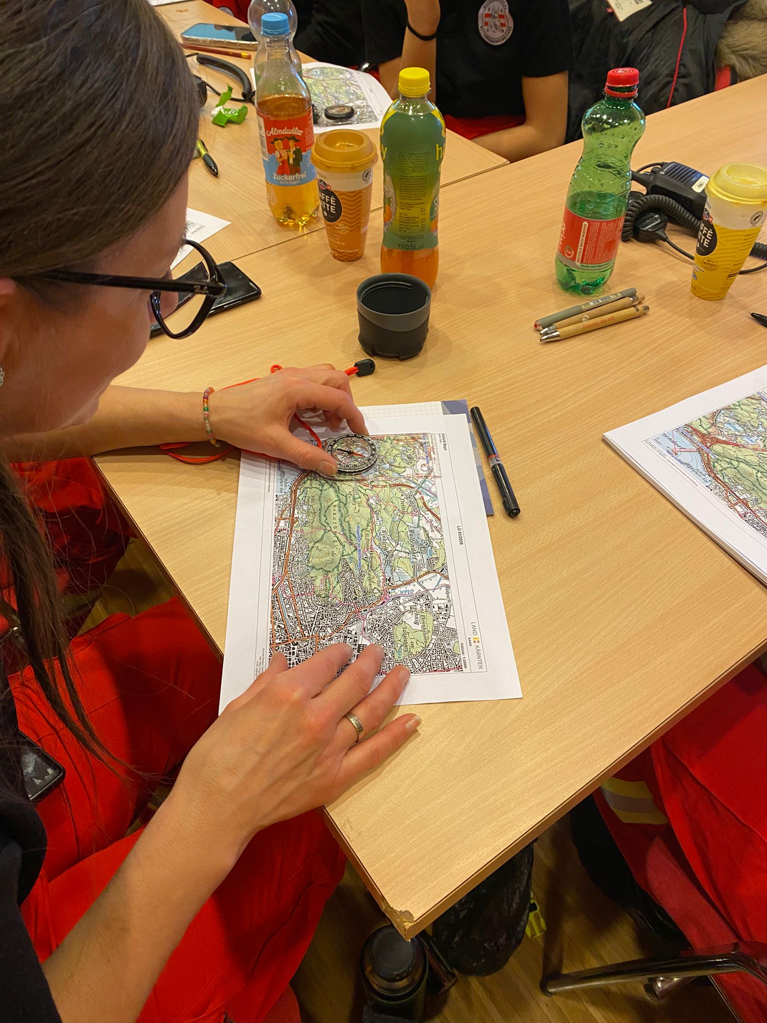 Am zweiten Tag galt es, das Erlernte in die Praxis umzusetzen. Am Parkplatz des Gasthauses Krall, wo wir dankenswerter Weise parken und unsere Einsatzzentrale aufbauen durften, trafen sich unsere Kamerad:innen. Dort erfolgte die Gruppeneinteilung und schließlich startete der Orientierungsmarsch am Spitalberg. Neben dem Umgang mit dem Einsatzsystem MOPS sowie dem richtigen Funken war auch abseits die Aufmerksamkeit aller Kamerad:innen gefordert – es galt vermisste Gegenstände zu finden und diese an die Einsatzleitung über MOPS und Funk weiterzugeben. Weiters erhielt jede Gruppe Karten mit Aufgaben, die während des Orientierungsmarsches zu bewältigen waren.