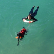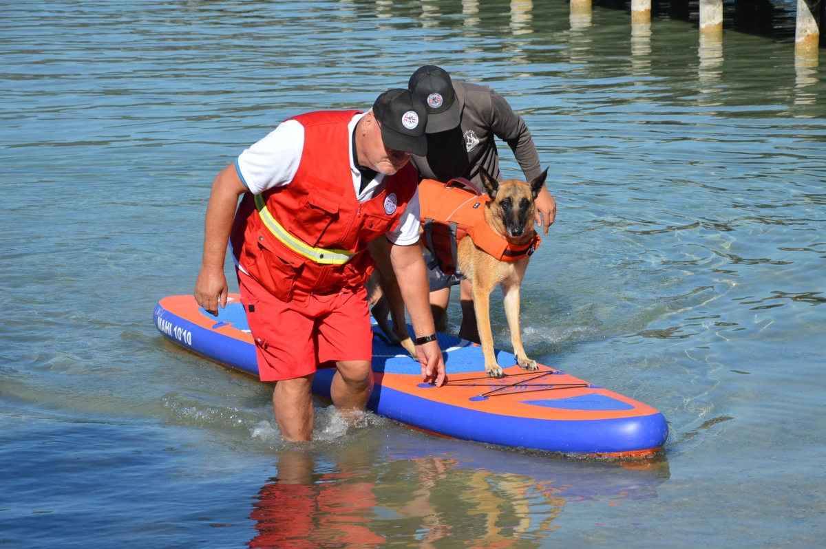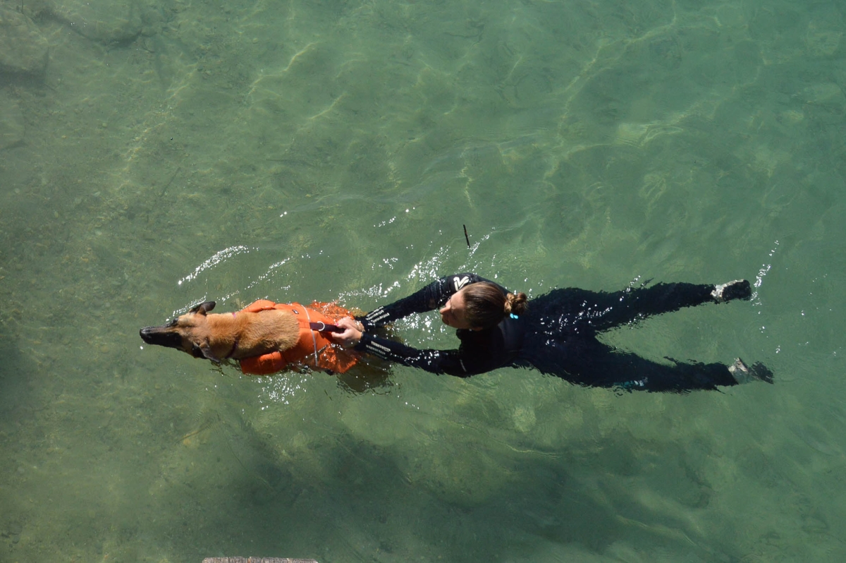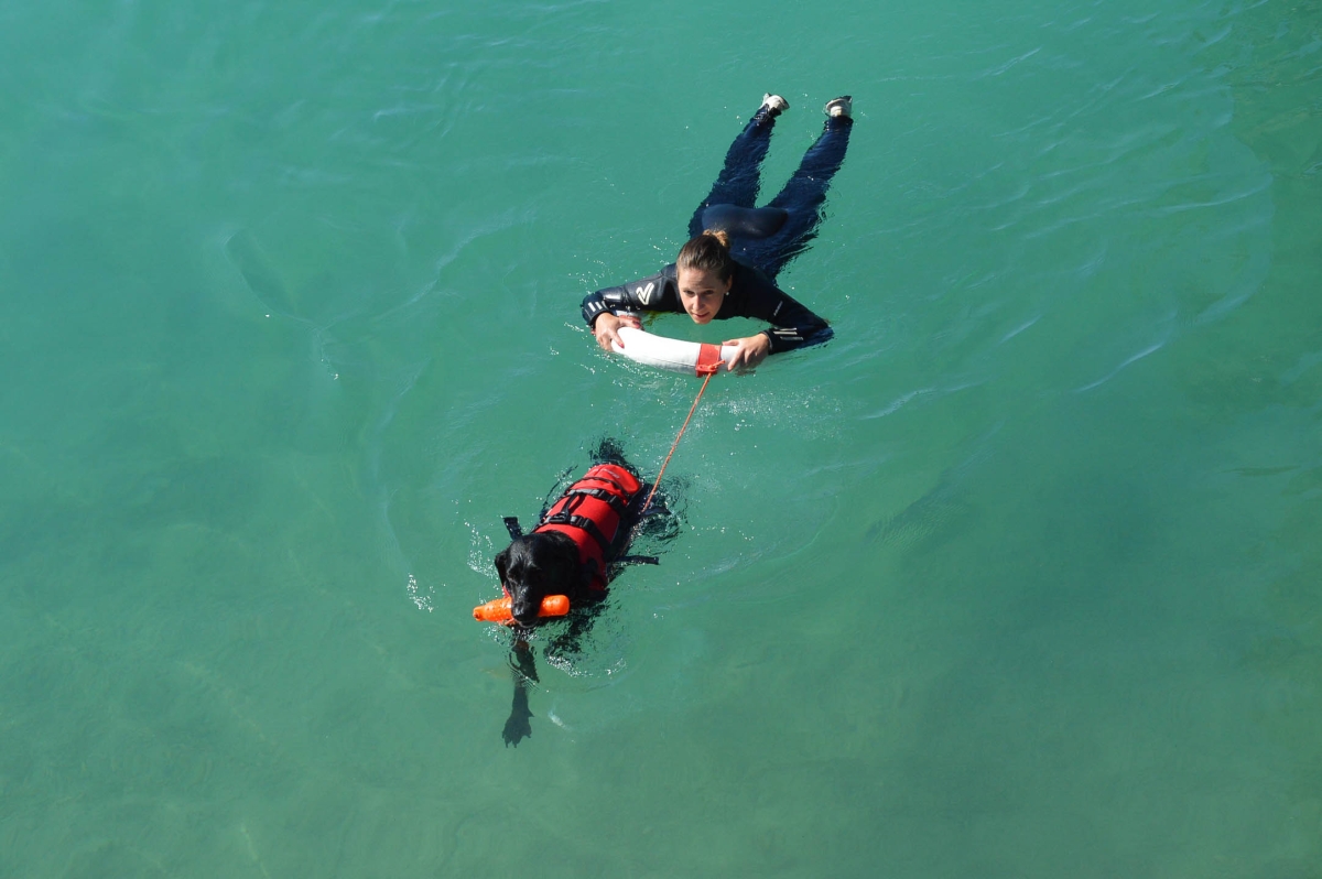 Bei Aufgaben wie dem Distanzschwimmen, dem Retten einer Person im Wasser vom Ufer sowie vom Boot aus, dem Ziehen eines fahruntüchtigen Bootes an Land und weiteren technisch anspruchsvollen Übungen zeigten unsere vielseitig ausgebildeten Rettungshunde ihr Können. Souverän meisterten die Teams die Prüfungen und wir konnten die weiße Flagge hissen.