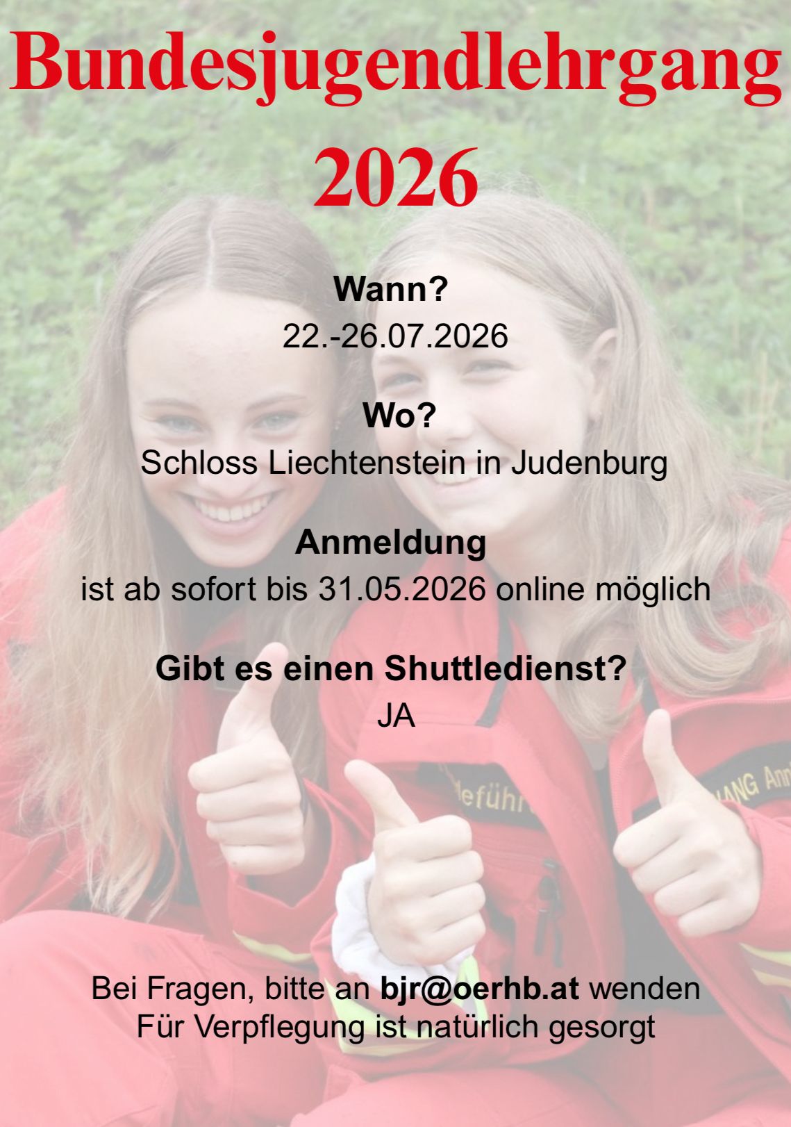 Ergänzend zur Anmeldung ist die ausgefüllte und unterschriebene Einverständniserklärung per Email an das Bundesjugendreferat (bjr@oerhb.at) zu übermitteln.